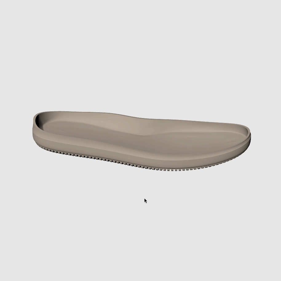 The pattern & outsole design follows the gesture of the human foot anatomy. A graphic, layered pattern that is justified by its place of use (on the foot).